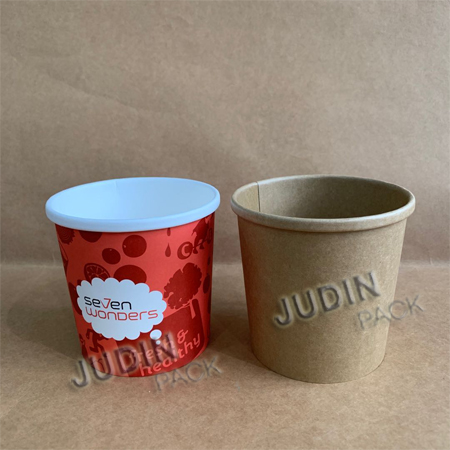 JD-XS-12 Product Description 12oz soup cup 1) Size: 90 x 73 x 87mm£¬350ml 2) Materials: PE/PLA coated white paperboard/kraft paperboard/bamboo paper